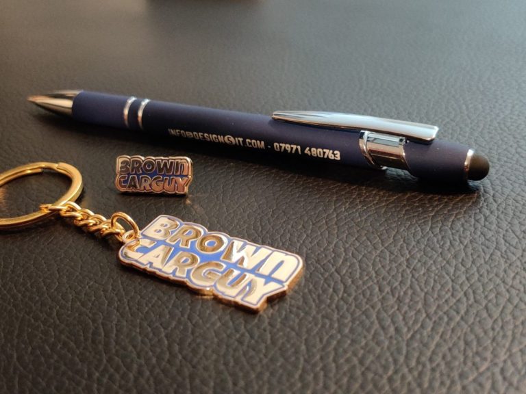 • Exceptional bespoke lapel pins, keyrings and pens.